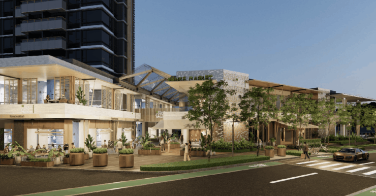 檐屿城小区占地约7.8万平方米,容积率仅3.0,总栋数9栋,打造低密度生态社区。小区内部规划了40米岭南雅奢美学门楼、檐下生活商业街及约1300㎡社交草坪,实现景观与日常生活的融合。社区设计借鉴日本OMO7酒店理念,结合岭南文化特色,形成可坐可躺的社交空间和滨水休闲场景,让居住者在都市中也能享受自然与宁静的生活体验,提升居住舒适度和生活品质。