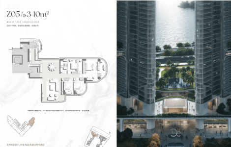小区配套:下沉式园林及私享会所,配置酒店式归家礼序与“星云企服”商业服务品牌