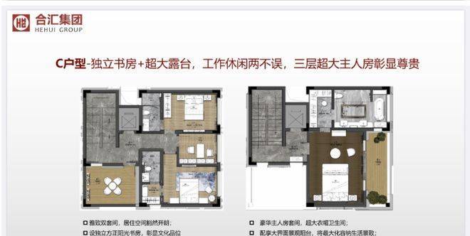 在售户型为 B 户型 209㎡ 、C 户型 250㎡ ,均为双拼别墅。209㎡四房二厅,超大双庭院设计,容纳天地自然;三层独设超大露台,拥有广阔观景视野。250㎡五房二厅,超大前庭后院,居家待客尽显荣光;独立书房搭配超大露台,工作休闲两不误;三层超大主人房,彰显尊贵身份。每户还赠送约 3 个产权车位,生活便捷又舒适。