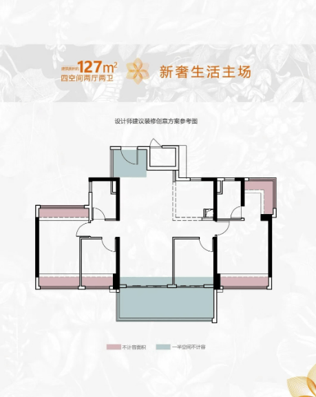 约89-127平方米三四空间:多种户型选择,满足不同家庭需求。