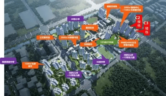 容积率:低至2.5(区域平均容积率3.2),楼间距更宽,居住密度更低;