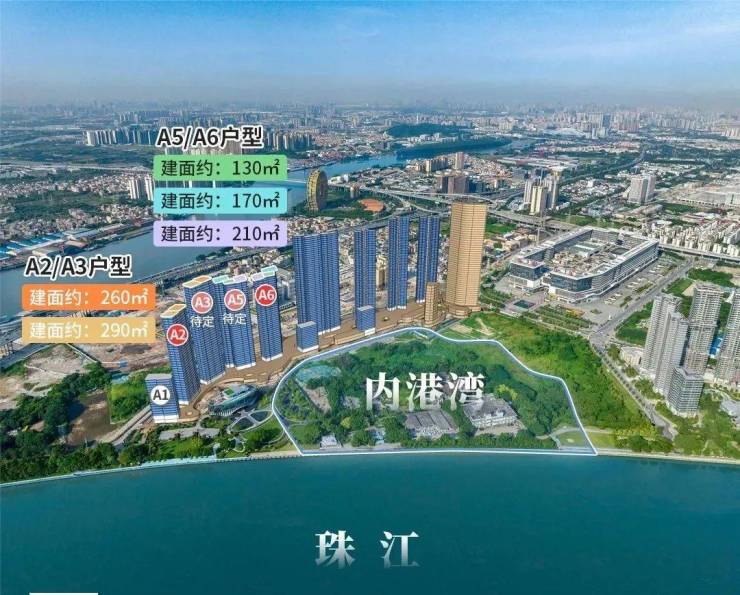 保利珠江天悦位于荔湾白鹅潭CBD核心区域,紧邻珠江后航道,占地约8万平方米,总建筑面积达32万平方米,规划有12栋住宅(层高14-57层),主推130-290平方米的一线江景大平层产品。项目设计对标国际滨水豪宅,融合了新加坡盖板式园林、IMAX环幕江景等创新理念,旨在重塑广州江岸人居标杆。
