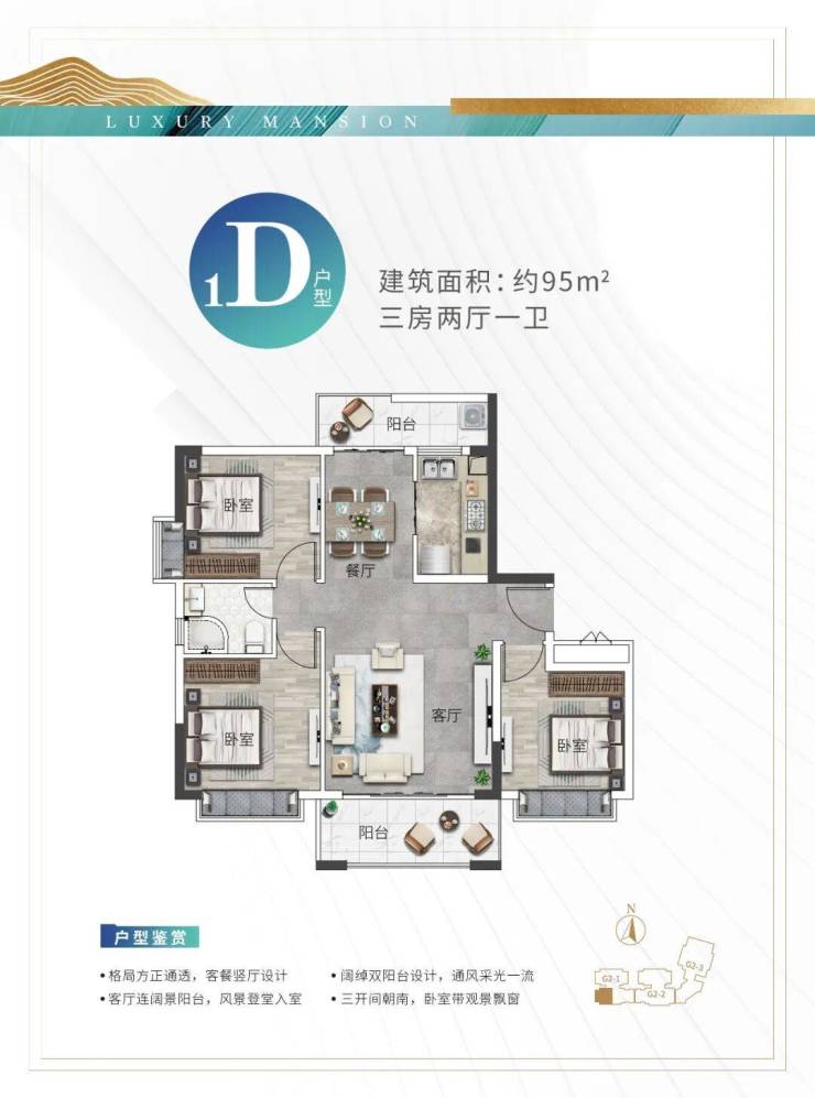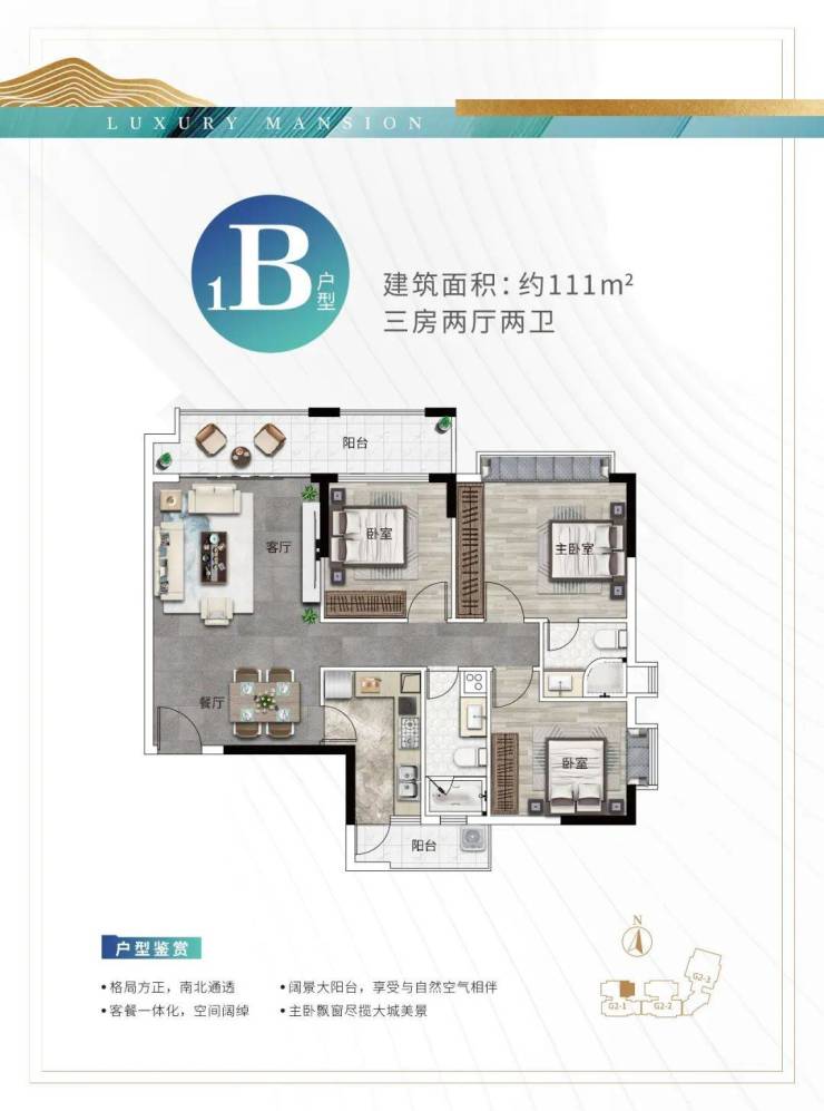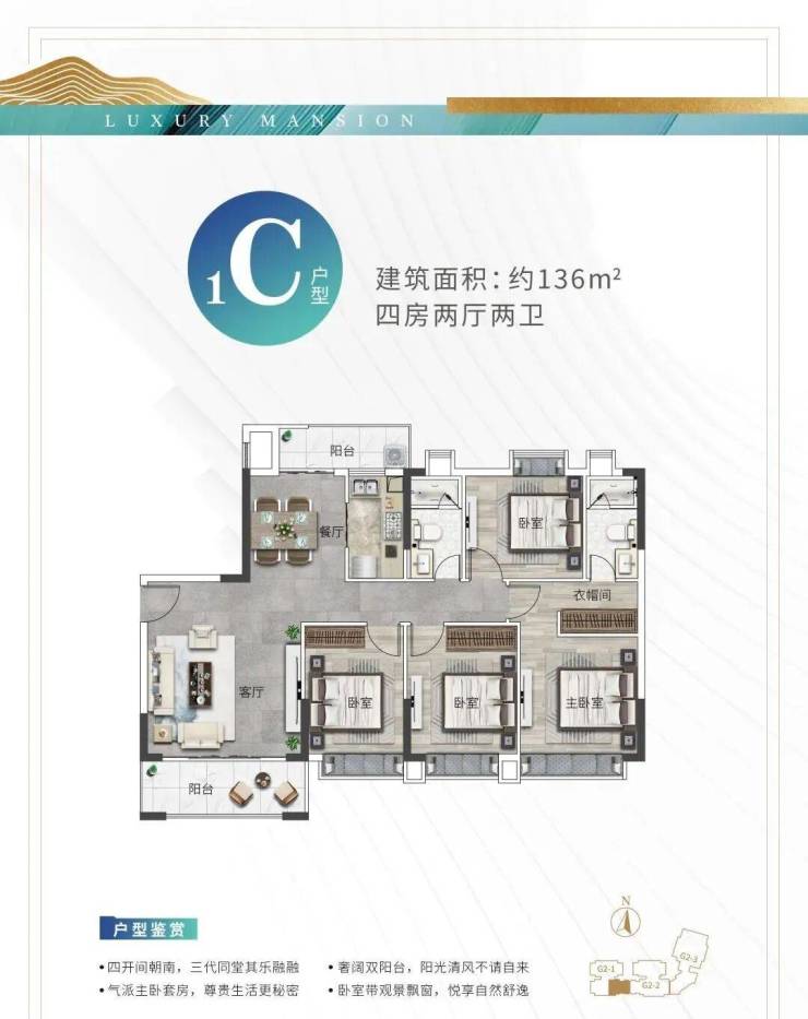 组团主推80-136㎡两房至四房,部分户型带约7.1米大阳台,风景尽收眼底。