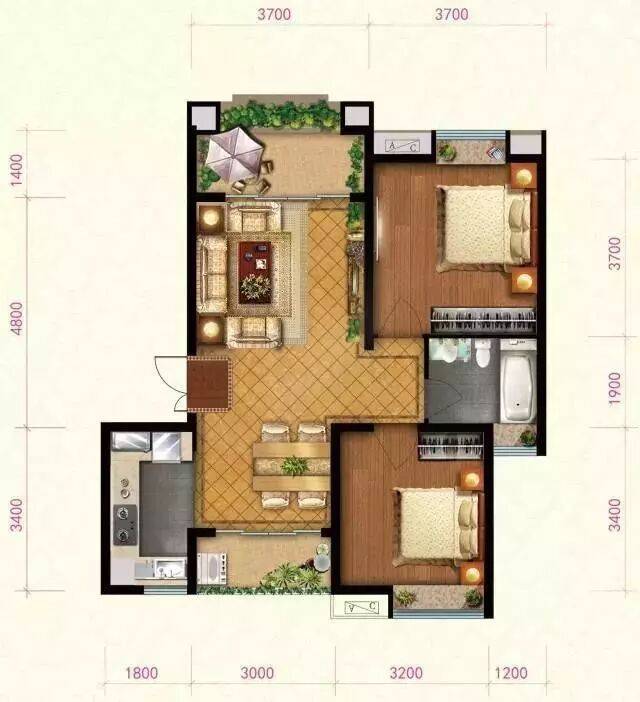 B户型的亮点在于其前庭后院的设计!古人智慧有加,向往“采菊东篱下,悠然见南山”的闲适生活。可见工作后归家能有一片属于自己的小天地,遥望远方能看见苍翠碧绿的大山,是人人皆向往的生活。远离一片烦嚣,闲时与家人回归山畔田园之乐,何其乐哉!