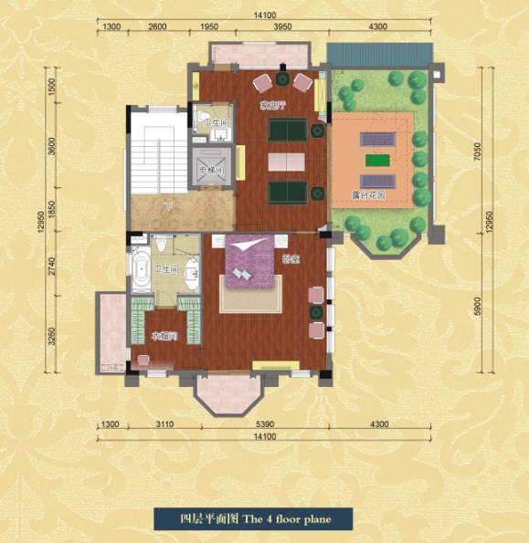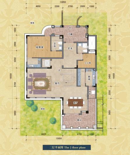 四联二层半,建筑基底卙地约139㎡,9米开间客厅面积:88㎡,三主套设计带约300㎡超大花园露台+中空赠送面积约91㎡
