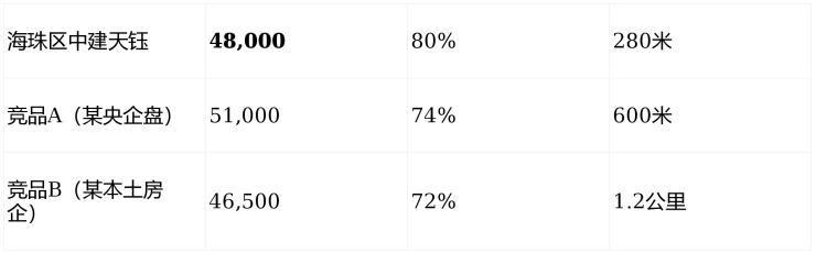 结论:中建天钰在单价、得房率、地铁便利性三项指标上综合最优。