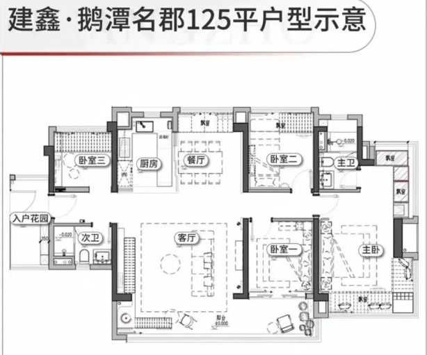户型:88㎡、89㎡、106㎡、108㎡、125㎡三至四房