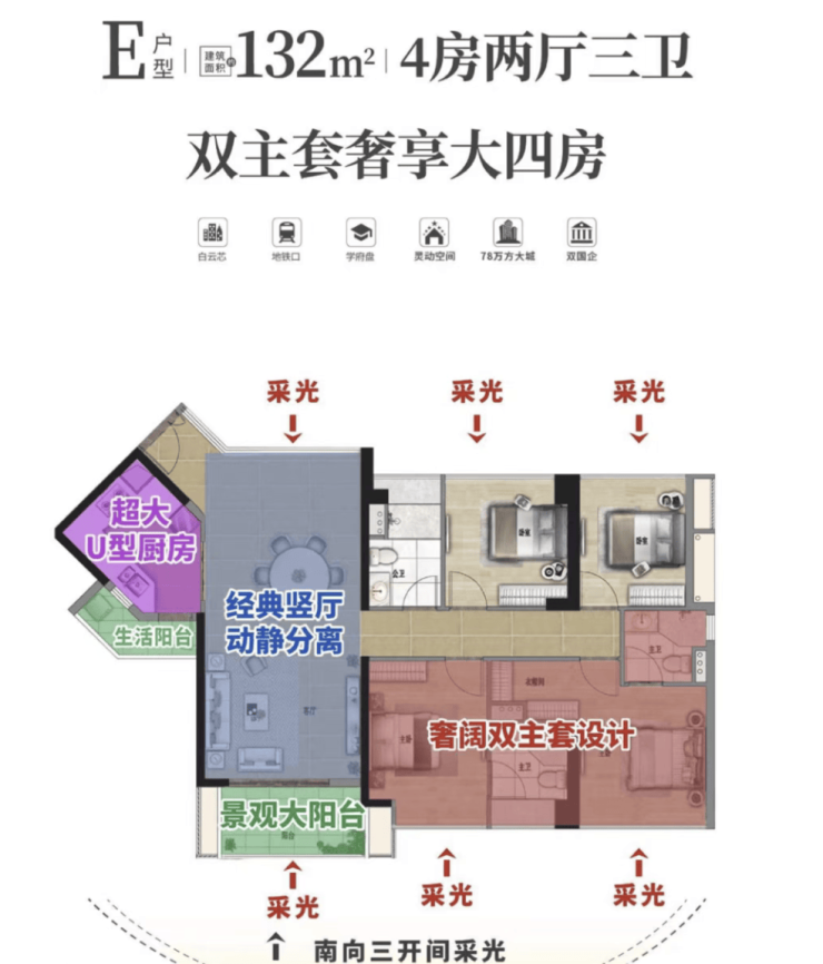 A:项目实测距地铁8号线亭岗站C口仅400米(高德地图2025年9月实测),3站直达白云站,14条地铁线路换乘覆盖全城,自驾10分钟至白云新城,25分钟至珠江新城。