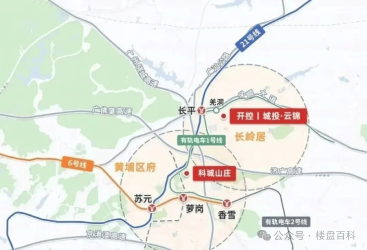 地铁——距离广州地铁21号线长平站约800米,地铁3站到科学城,5站到天河;距黄埔有轨电车1号线羌洞站约200米,1站换乘地铁,通达香雪公园、萝岗湿地公园、市民广场、黄埔区府、北师大等,轻松串联科城生活;