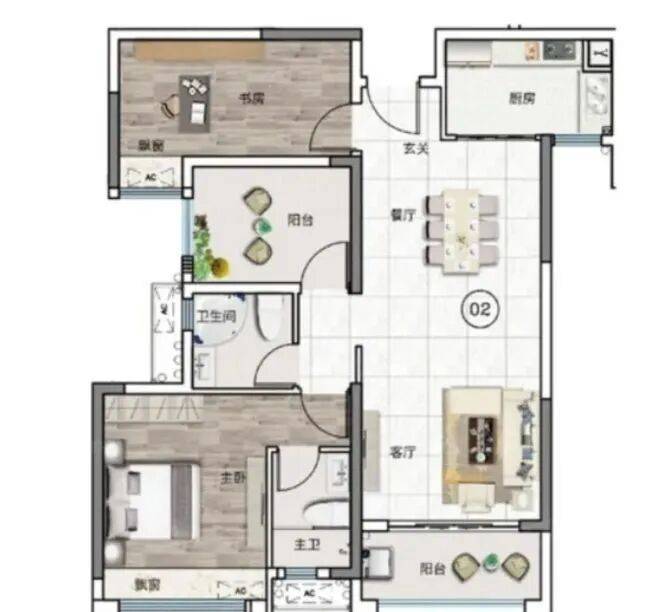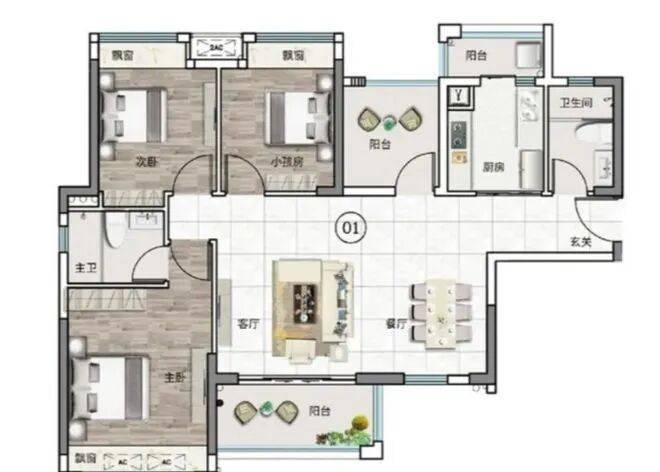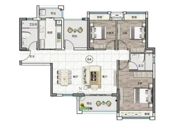户型是中港·顺芯台最让人眼前一亮的部分。以主力产品98㎡三房两卫为例,进门后玄关预留了收纳区,客餐厅一体化设计让空间显大,主卧带独立卫生间,次卧与书房灵活可变——这种配置在过去通常要110㎡以上才能实现。111㎡和118㎡户型则进一步优化了动线,比如118㎡的04单元,南北双阳台分别连接客厅与主卧,晾晒与观景功能完全分离;厨房U型操作台面超过3米,还预留了嵌入式家电位置。所有户型均采用高窗地比设计,加上合理的承重墙分布,后期改造空间也相对友好。