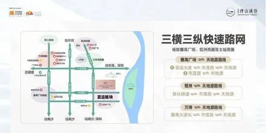 十八号线和二十二号线的开通,彻底改变了番禺与市中心的空间距离感。它们如同两条地下巨龙,将番禺广场到珠江新城的时间压缩到了极致,让“工作在天河,生活在番禺”成为一种轻松惬意的生活方式。无论是前往珠江新城 CBD 洽谈业务,还是去广州塔游玩购物,亦或是前往南沙自贸区探索未来,天地源伴山溪谷的业主都能享受到极速通达的便利。
