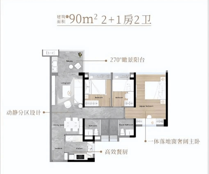 畔山邸:270°瞰景阳台,动静分区设计,高效餐厨,一体落地窗奢阔主卧。