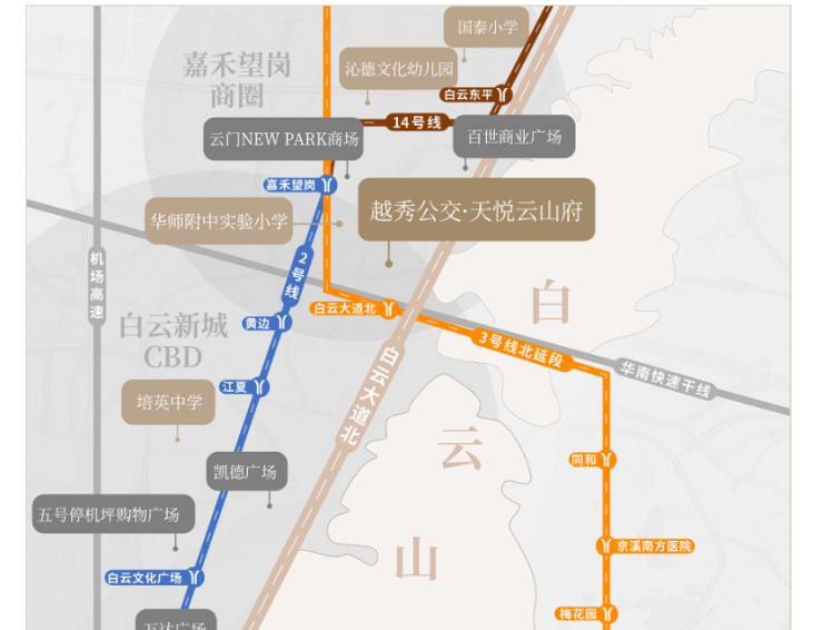 国宾道:自2002年起,越秀地产在白云区陆续打造了一系列国宾级物业,包括鸣泉居、广州白云国际会议中心等,筑起了一条属于千年羊城的国宾道,增添了城市的文化名片。