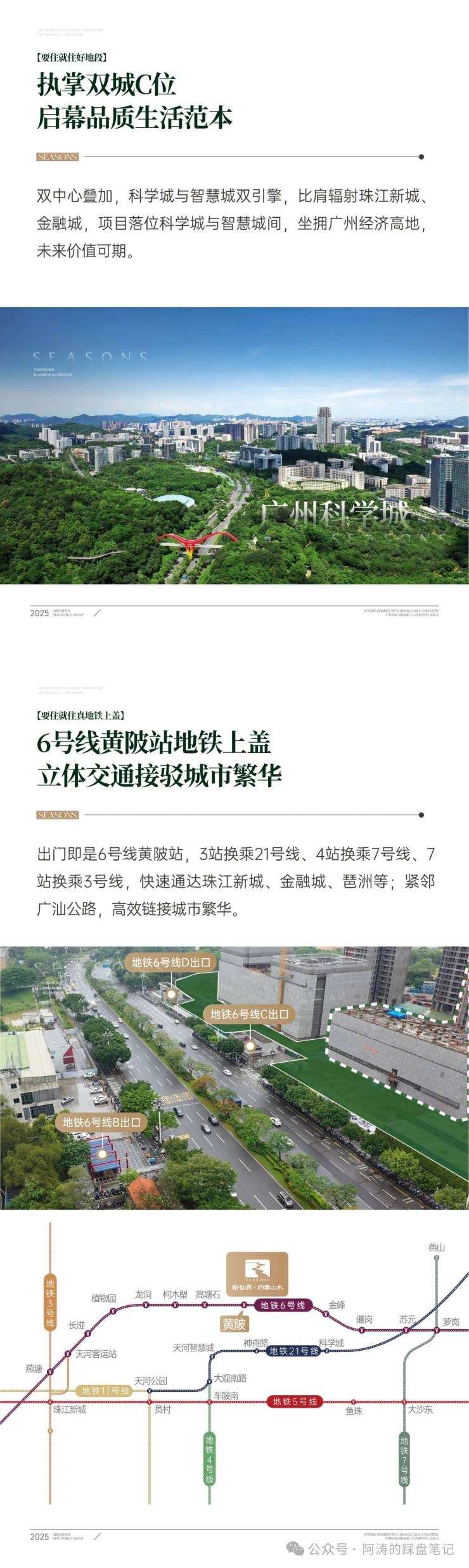 **总括**:新世界·四季山水是黄埔黄陂科学城**唯一新规地铁上盖生态住区**,兼具“**30米地铁口+114%-118%高使用率+5大公园环绕+全龄教育+成熟商业**”五大核心价值,是天河东改善家庭自住优选。