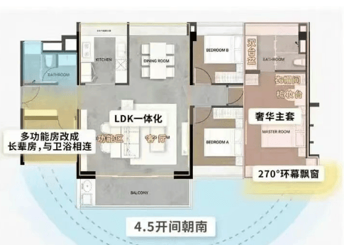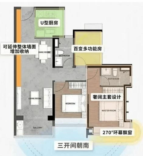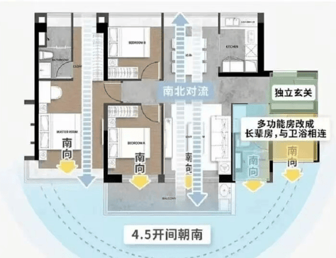 提供从80平到140平的多种户型选择,所有户型均采用蝶形布局,确保每户都能享有良好的采光与通风条件,并尽可能多地欣赏到东面河涌及南面江景资源。