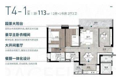 113㎡平层:两房 + 1 书房两厅两卫设计,空间布局合理,满足家庭基本居住需求的同时,书房可灵活改造,适应多样化生活场景。售楼处电话:4009909752。