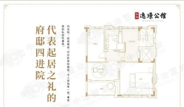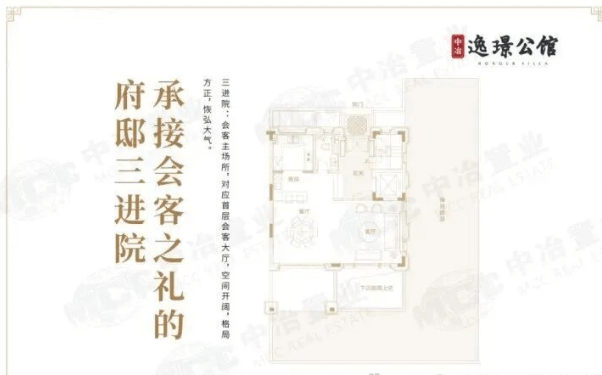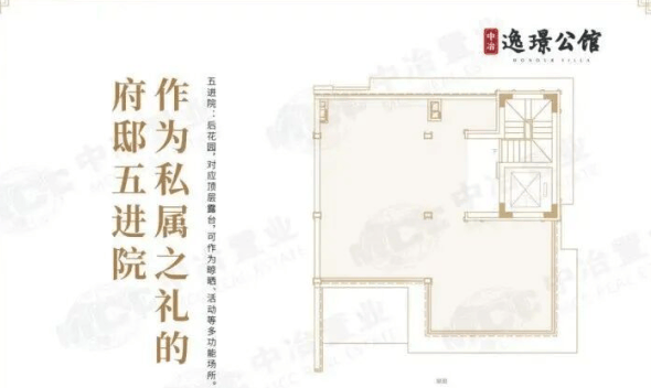 中冶·逸璟公馆主力户型为230-252平方米的新中式院墅,采用“五进院式”空间布局,包括三大独立车库、6米挑高中空会客厅、超大方厅设计、独立卧室套间及空中庭院,满足不同家庭的需求。