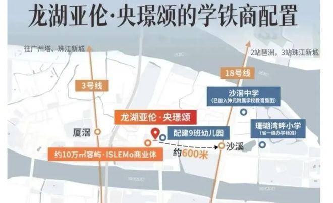 教育配套有亮点。自身规划幼儿园,迈出目送式教育第一步。小学大概率是省级珊瑚湾畔小学,旁边还有沙溪小学。对口初中为洛浦沙滘中学,约 2 公里,最近刚确定纳入仲元中学集团成员校,教育质量有提升空间。整体来看,孩子教育有一定保障,家长接送相对方便。