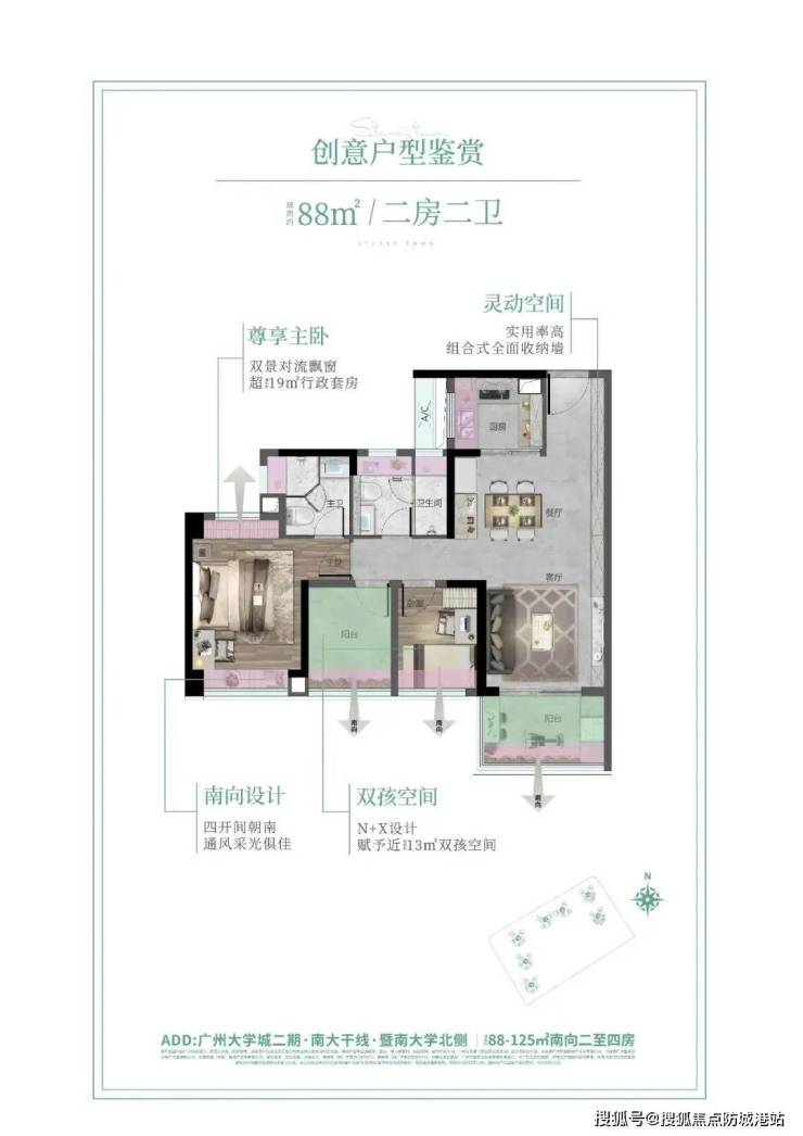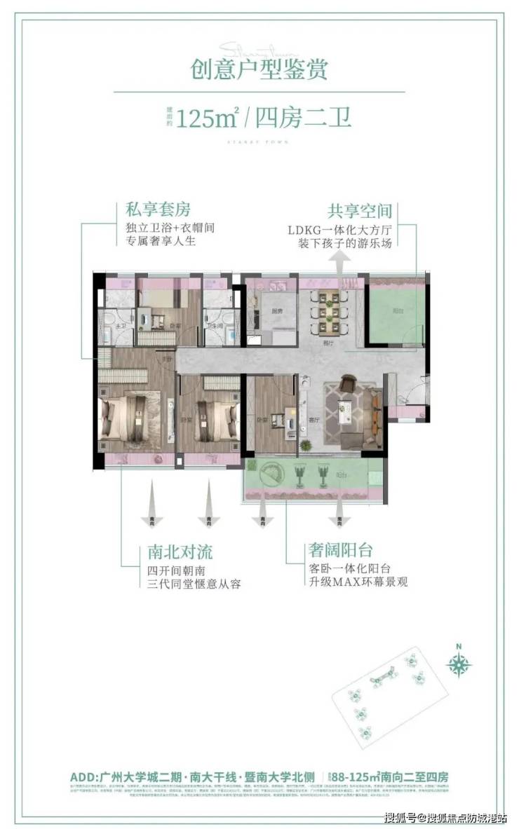 户型设计:全盘100%南向设计,无北向户型,采光通风极致优化。部分户型使用率达92%,比市场同面积段产品多出约10㎡实用空间(数据来源:广州市房地产行业协会2025年户型评测报告)。