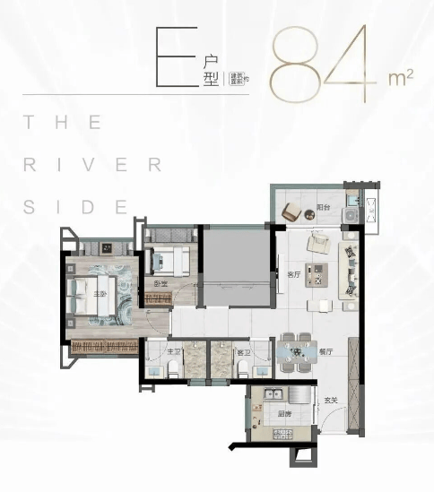 84平米:宽敞三房,空间布局合理,享受舒适生活。