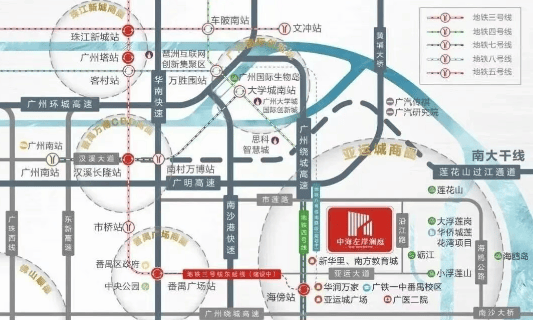 中海左岸澜庭地理位置优越,交通便捷。临近地铁4号线海傍站(约2.5公里),自驾通过新化快速、华南快速等主要道路,可快速通达番禺广场、珠江新城等地;经新化快速,20分钟可达琶洲,30分钟可达珠江新城。