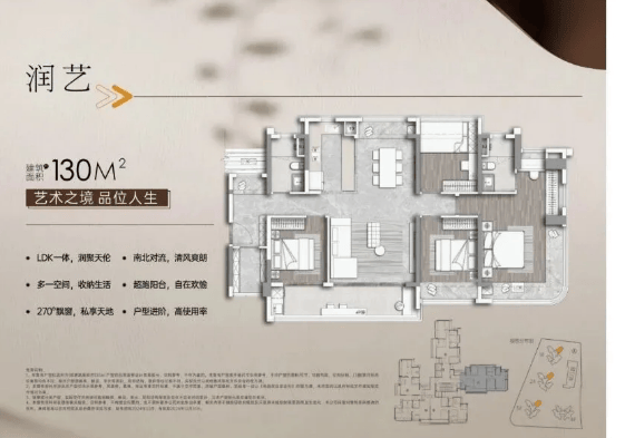 128-130㎡四 + 1 房两厅两卫:终极改善,130㎡南北对流 4+1 房,超 62㎡LDKB 大方厅,主卧带超长 L 型转角飘窗,全屋多条对流动线,适合三代同堂,二期升级户型精装体系 2.0,智能化配置拉满。