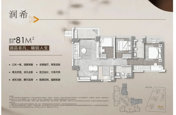 80-90㎡三房两厅两卫:刚需爆款,81㎡做到大 3 房 2 卫,90㎡四开间朝南,主卧套房设计,预留定制收纳空间,适合三口之家,当前一期清货性价比高;