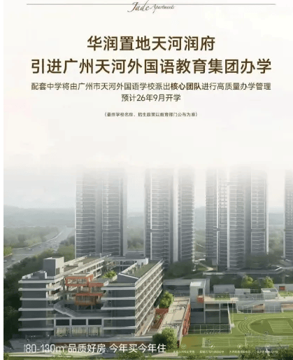 作为天河智谷板块的标杆项目,华润置地・天河润府以 “超 100% 使用率 + 双明星学府 + 准现楼交付” 的组合,蝉联天河区 2025 年 1-6 月销量冠军。项目主打 80-130㎡三至四房,创新蝶式楼型与 11.2 米抬高设计,实现 “小面积享大空间”,同时对口体育东均和小学(体育东教育集团),初中引进天河外国语学校(2026 年开学),当前一期清货价贴近成本,今年买年底住,完美平衡 “天河区位、优质教育、高性价比”,成为刚需家庭与科创精英置业天河的首选。