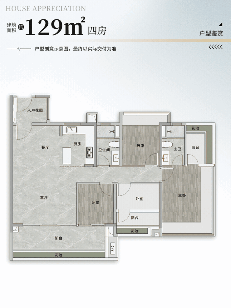 129㎡四房两厅两卫:总价约620万元起,南北通透,双主卧套房设计,适合多孩家庭或三代同堂。