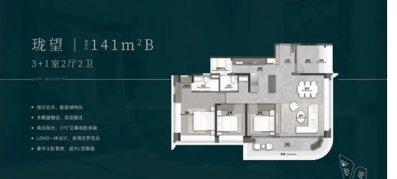 131㎡ 4+1房是项目的终改户型,针对高端改善家庭设计,空间宽敞、功能齐全,加上超高得房率,居住体验堪比150㎡的大户型,是一步到位的理想选择,总价850万起,对于追求品质生活的精英人群来说,极具吸引力。