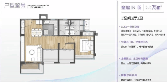 这些户型设计注重空间利用率,比如75平方米可以做到三房两卫,使用率高达95%左右。