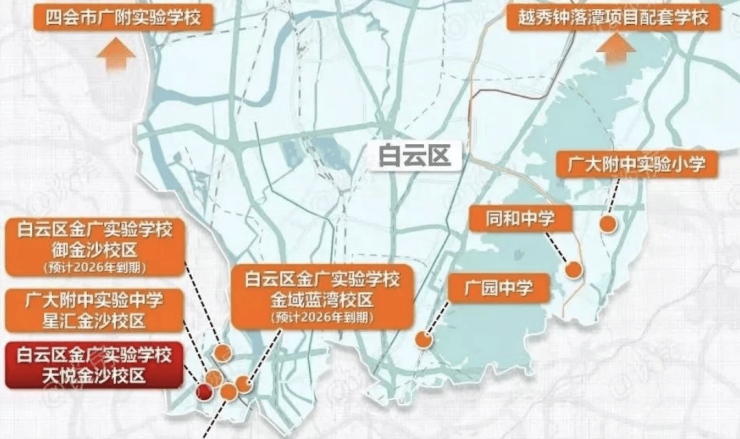 社区内配建30班小学及18班幼儿园,均由白云广附教育集团统筹管理,纳入金广实验学校体系,实现“家门口的优质教育”。周边还汇聚广大附实验中学、广东省华侨中学等知名公立学校,形成从幼儿园到高中的完整教育链条,满足家庭对子女教育的长期规划需求。