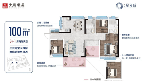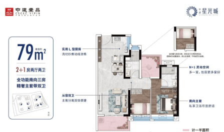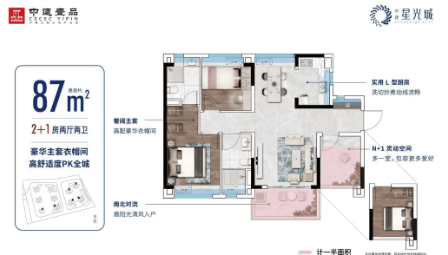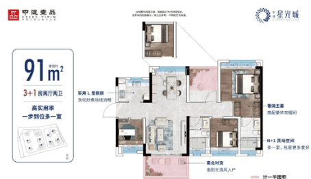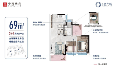 中建星光城提供的户型涵盖了从69平方米至100平方米不等,适合不同家庭结构的需求。所有户型均注重空间利用率和居住舒适度,实用率高达94%以上,确保每一寸空间都得到充分利用。