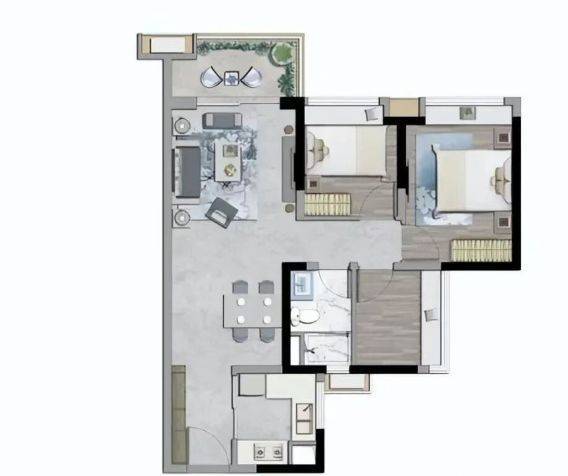 81㎡ 3房2厅1卫:经典竖厅设计,动静分区合理,U型厨房充分利用空间,适合预算有限的刚需家庭。