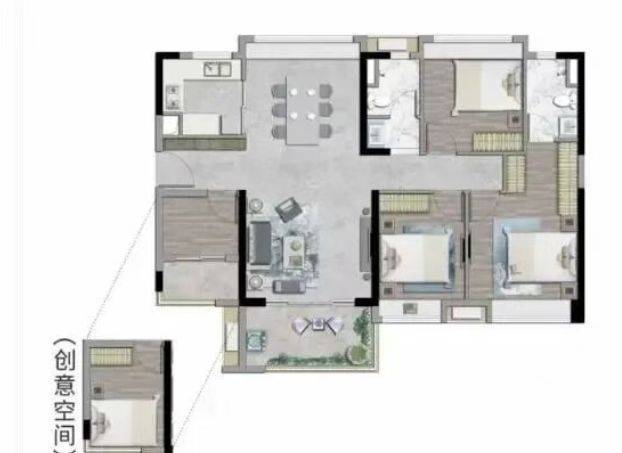 124㎡ 4房2厅2卫:四开间南向,奢适主卧套房,配备独立衣帽间与卫浴,适合高端改善型客户。