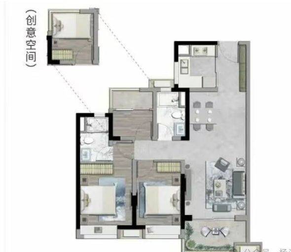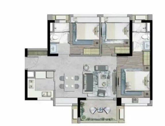 113㎡ 4房2厅2卫:南北对流单边位,双向采光,方正户型满足改善型家庭对空间的需求,适合多代同堂。