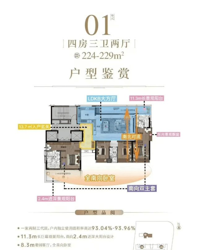 新城市领院提供两种主要户型:130平方米的三房和224-229平方米的四房。小高层部分采用了2梯2户的设计,确保了住户的私密性和舒适度。值得一提的是,小高层8楼以下是按照旧规建造,而8楼以上则采用了新规,新规产品具有更高的使用效率。