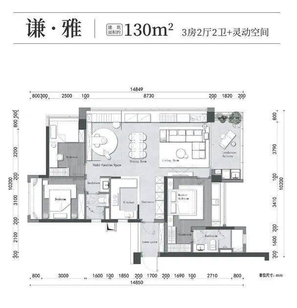 130平户型是东向,带一个入户花园,可以做鞋柜收纳,主卧跟次卧分别在东西两个方向,不过其中一个次卧飘窗是西向,可能会有西晒的烦恼。