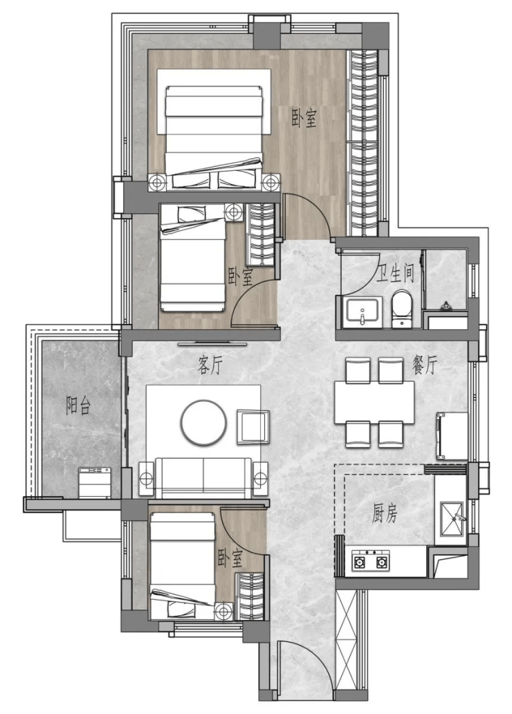 户型产品:新规高得房率,69㎡三房到113㎡四房精准匹配需求