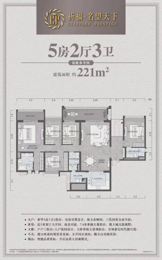 项目由 5 栋超高层组成,点式布局与风车型设计独具匠心,实现户户南北对流、三面单边。户型涵盖 78 - 222㎡的二房至五房,满足不同家庭结构的需求。以超前的豪宅生活理念,精心打造每一寸空间。国际品牌豪华交标,融入智能化健康人居元素,为业主带来高品质生活体验,树立豪宅居住新范本。