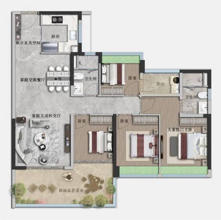 业主陈先生(140㎡业主):“我最喜欢南北双阳台,南阳台种花,北阳台晾衣,互不干扰,这才是真正的改善生活!”