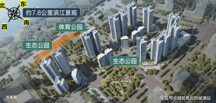 公园:项目西侧为7.8公里滨江景观带,东侧为中央公园(规划中)。