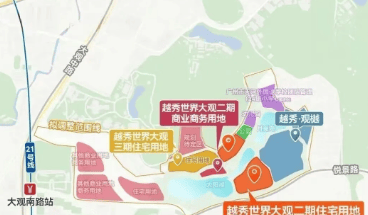 项目地处天河世界大观板块,悦景路以北,帝景山庄以西。目前距离最近的地铁 21 号线大观南路站约 2 公里,业主主要通过悦景路出行,东接珠吉路,西连奥体路,可快速接驳广园快速、大观南路等主干道,自驾上下高速十分方便。
