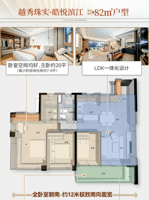 在当前市场普遍追求“得房率”的背景下,皓悦滨江以建面约80-111㎡的南向新规三至四空间产品,重新定义高实用率小户型标准。其阳台占比最高可达20%,部分户型实用率有望突破120%,远超市场平均水平。