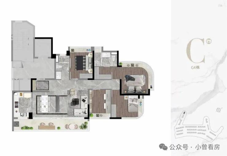 目前主要在售的是143㎡的大平层和叠墅产品,所有户型均为两梯两户设计,确保了居住的私密性和舒适度。大平层采用了全东南望湖景最优朝向设计,卧室大飘窗全赠送,并设置有270°大转角飘窗,让阳光、微风与绿意融入日常生活。叠墅则带有低密台地规划,独门独户的设计增加了生活的私密性。