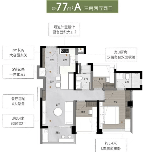 万科・檐屿城的户型设计充分考量现代家庭的居住习惯,通过 300 多户客户调研,打造 14 种变异户型,覆盖建面约 77㎡、88㎡、103㎡、105㎡、135㎡等多个面积段,均为三至四房布局,适配刚需与改善不同需求。