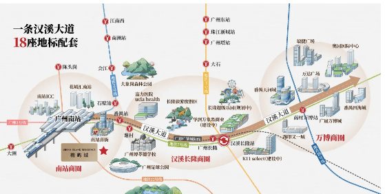 商业与生活配套同样完善,项目自身规划生活美学馆与 “檐下集”,已引进 PAIX 咖啡、健民牛奶甜品、trek 骑行等品牌,首推楼栋下楼即可享受便利;周边汉溪大道沿线聚集 18 座地标级配套,全国最大足球场即将兑现,南站 ICC、花城汇、K11 select、万象系等高端商业体密集分布,新鸿基南站商业综合体 2 万方商场已封顶,预计 2026 年运营,满足购物、休闲、娱乐等多元需求。医疗方面,UCLA Health 附属医院已于 2023 年 7 月运营,为业主健康保驾护航。
