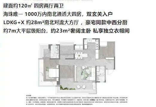 120㎡的四房两厅两卫户型,则更适合追求高品质生活的改善型家庭。它实现了南北通透的设计,空气对流效果极佳,冬暖夏凉。双玄关入户设计,动线清晰,私密性好。约28㎡的大方厅南北对流,空间尺度舒适。中西分厨的设计,既满足了中式爆炒的需求,又兼顾了西式简餐的便利,功能分区明确。总价在1000万以内就能拿下这样一套高品质的四房,性价比非常高。