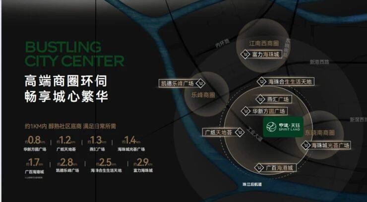 如果想去更高端的商圈,2公里范围内就能到达江南西商圈。这里是广州著名的时尚潮流聚集地,拥有广百新一城、富力海珠城等大型购物中心。无论是购买国际大牌、时尚服饰,还是品尝各地特色美食,或者观看最新上映的电影,都能在这里一站式解决。周末带着家人朋友来逛逛,享受轻松的购物时光,是再惬意不过的事情。