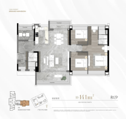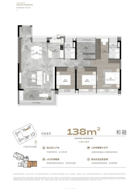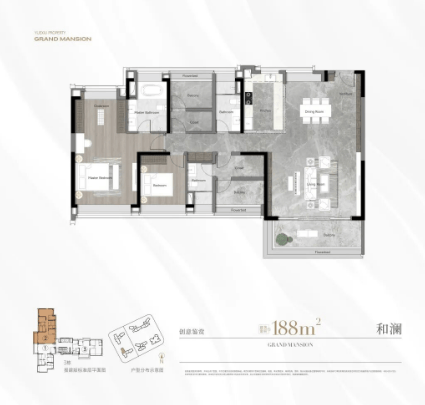江湾·和樾提供了多种户型选择,从107㎡到188㎡不等,每一种户型都强调南向瞰江与低密舒适的特点。其中,188㎡四房户型尤为突出,设计有270°环幕江景,主卧套房配备双台盆卫浴,LDKB聚厅面积超50㎡,为业主提供极致的生活体验。